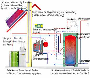 über der des Heizkessels liegt. Durch das Einschichten der Solarwärme in den oberen Speicherbereich arbeitet der Sonnenkollektor wie ein gleichberechtigter zweiter Heizkessel. |